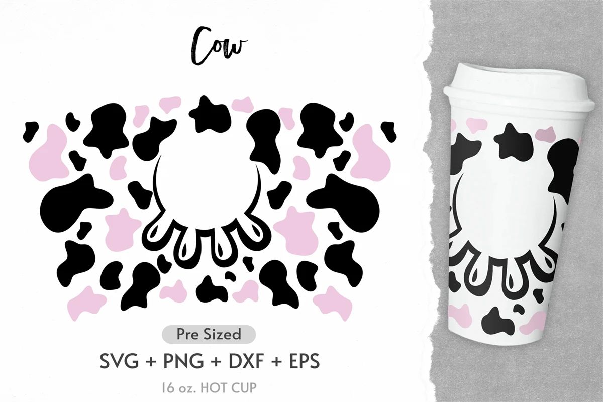 16oz Cow Print Starbucks Hot Cup Svg, Cow Pattern, Cow Svg,