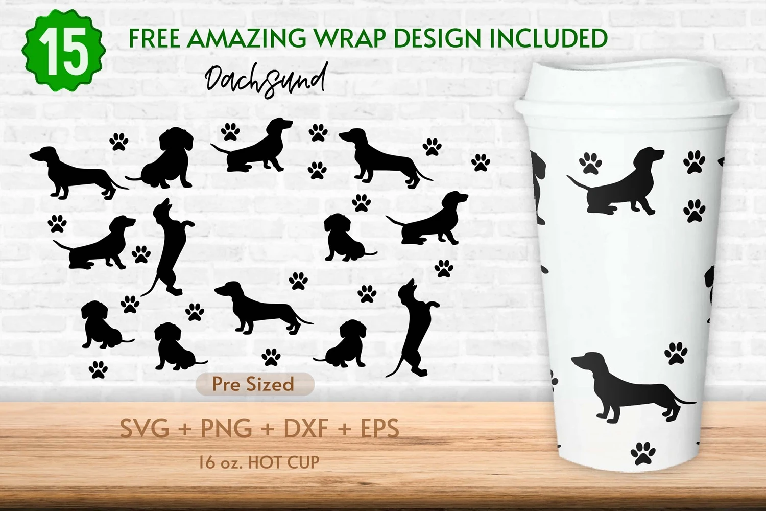 16oz Dachshund Starbucks Hot Cup Svg, Dog Mom Svg, Dachshund