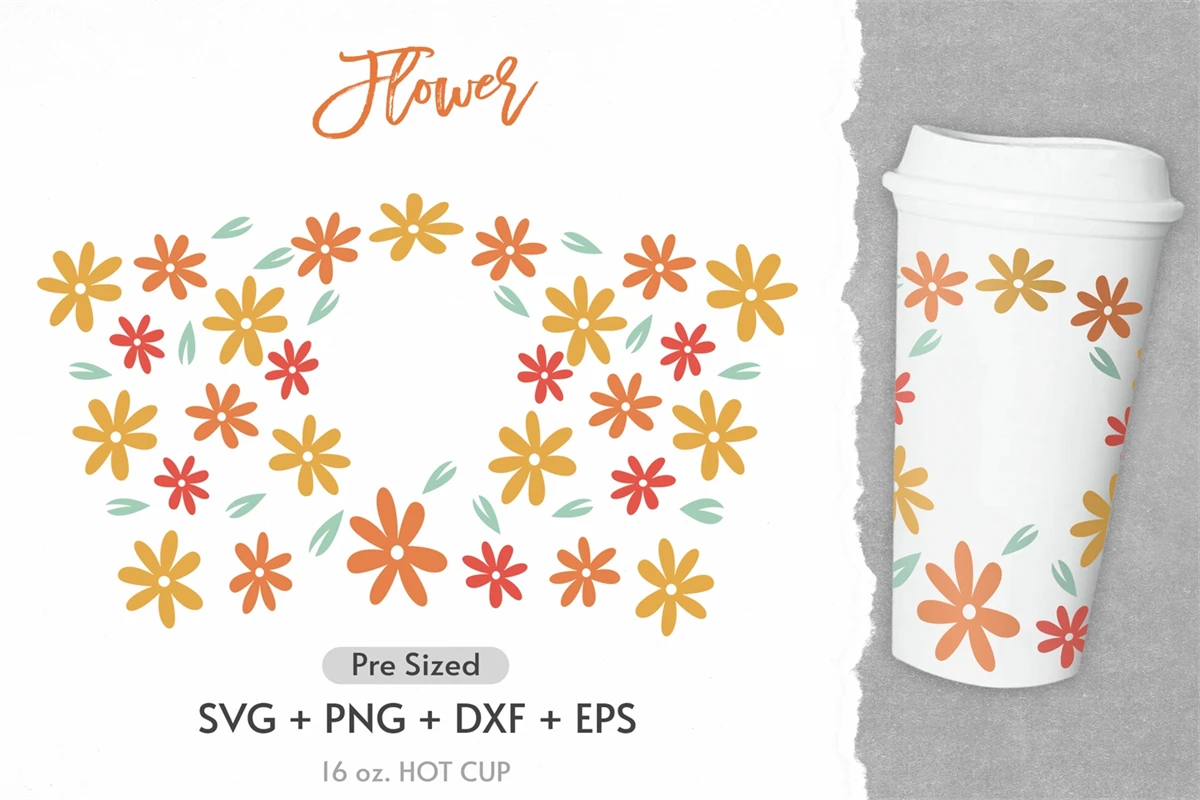 16oz Daisy Starbucks Hot Cup Svg, Daisy Svg, Flower Svg, Png