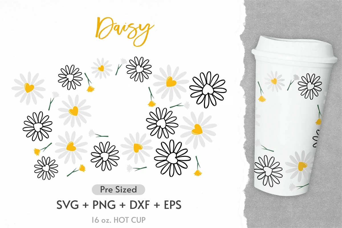 16oz Daisy Starbucks Hot Cup Svg, Daisy Svg, Flower Svg,Png