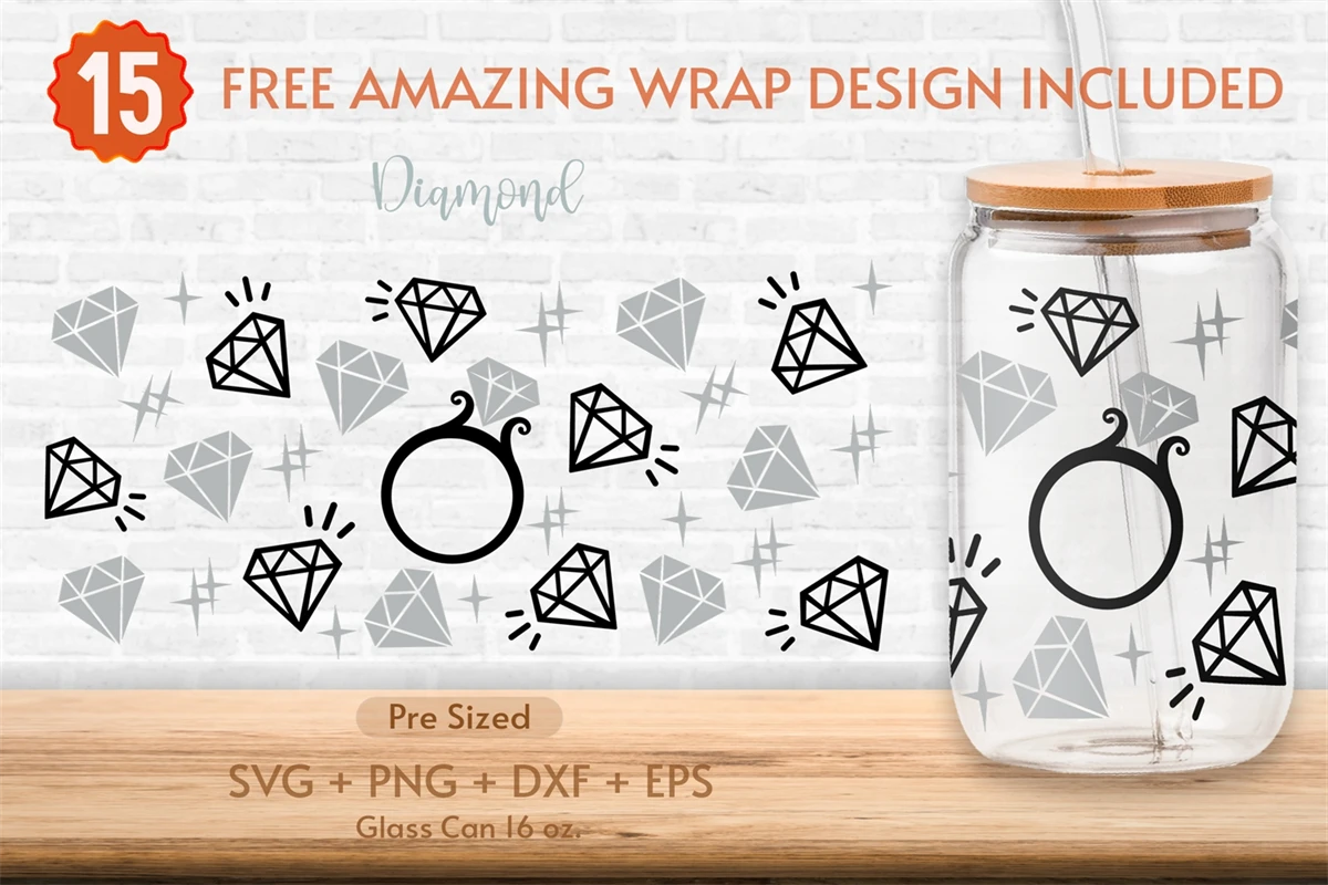16oz Diamond Libbey Glass Can Svg, Diamond Ring Glass Can