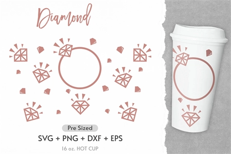 16oz Diamond Starbucks Hot Cup Svg, Hot Cup Svg, Full Wrap