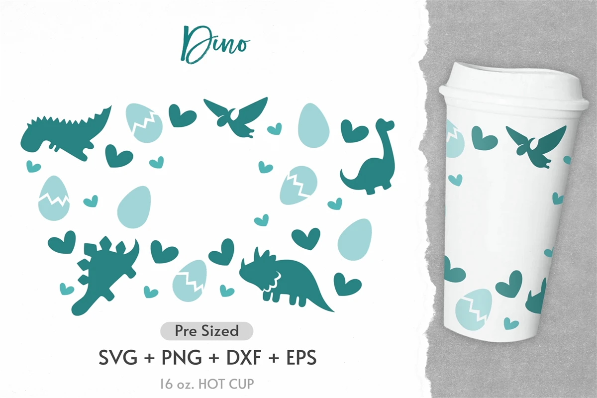 16oz Dino Starbucks Hot Cup Svg, Hot Cup Svg, Saurus Svg,Png