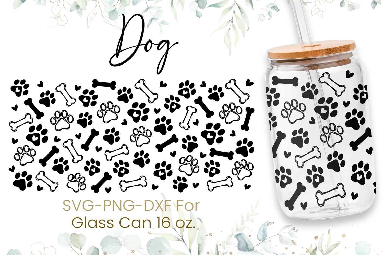 16oz Dog Pattern Libbey Glass Can Svg, Dog Svg, Animal Svg