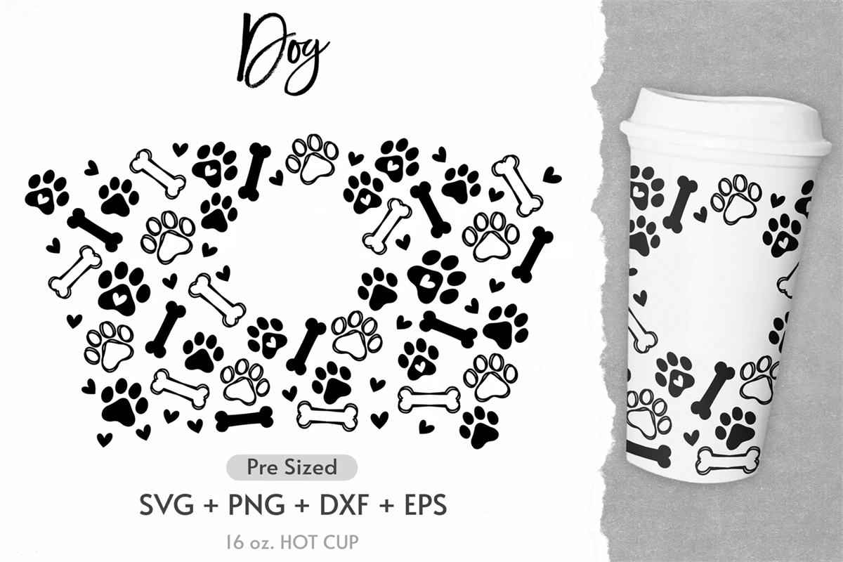 16oz Dog Print Starbucks Hot Cup Svg, Dog Svg, Dog Paw Svg
