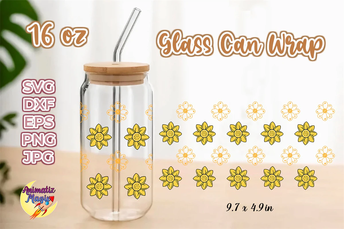 This file was designed for be used for your Libbey 16 oz glass can projects. However, they can still work in larger or smaller sizes. The svg and eps files can be edit however you need and you can move the elements around to fit your projects.