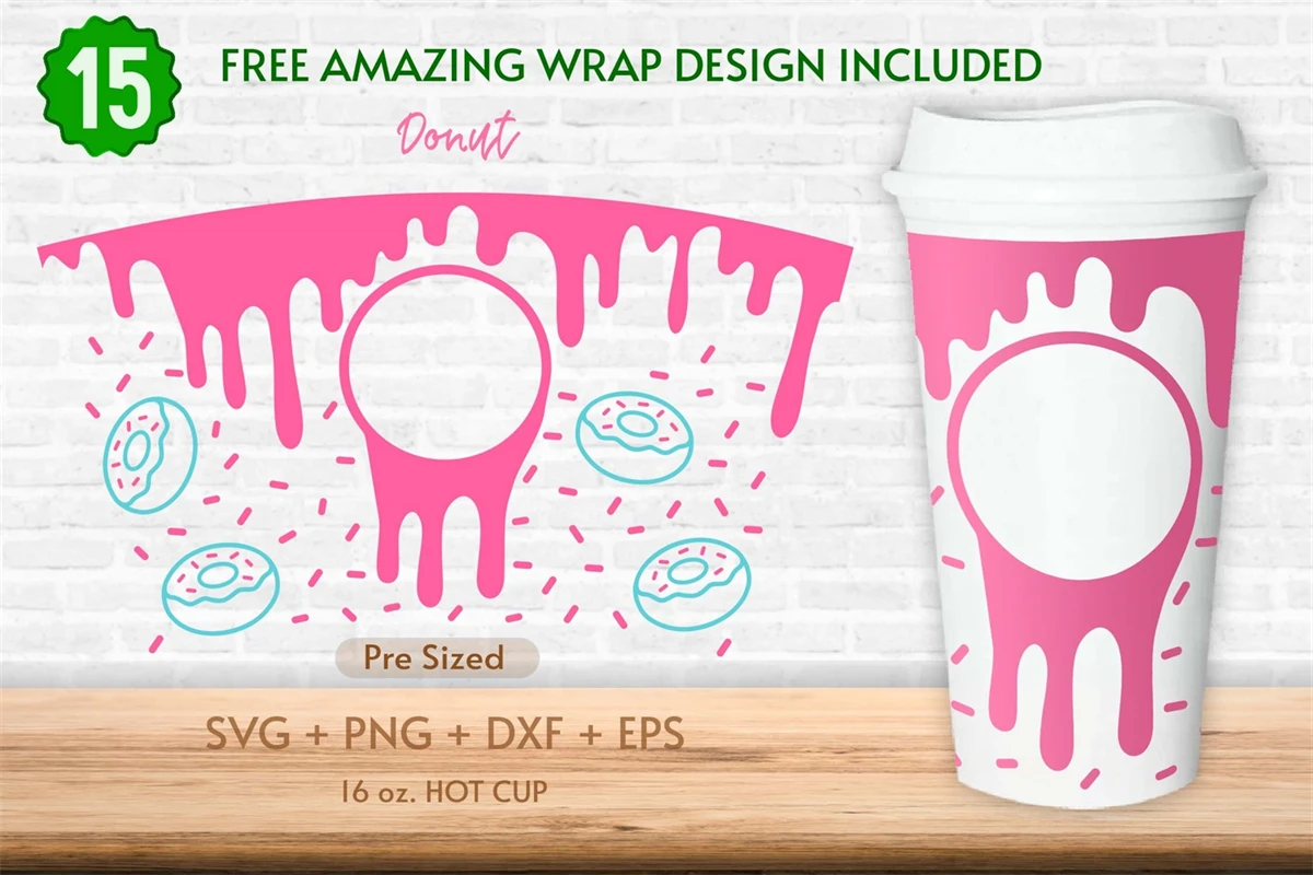 16oz Donut Drip Starbucks Hot Cup Svg,Full Wrap Svg, Donut