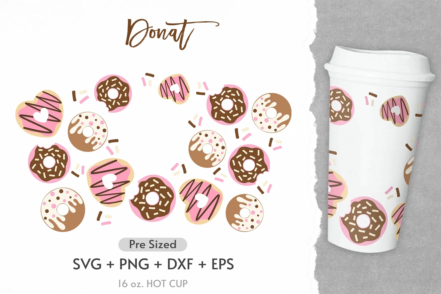 16oz Donut Starbucks Hot Cup Svg, Donut Drip Svg, Bake Svg