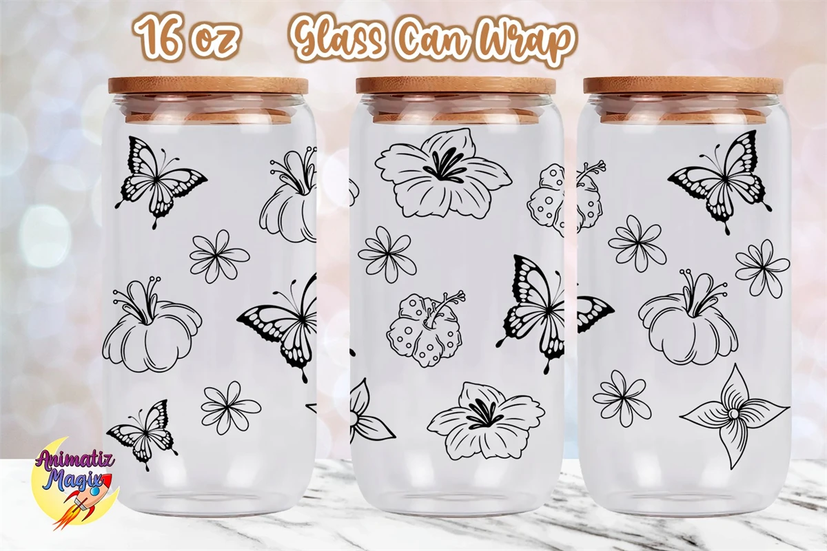 This file was designed for be used for your Libbey 16 oz glass can projects. However, they can still work in larger or smaller sizes. The svg and eps files can be edit however you need and you can move the elements around to fit your projects.