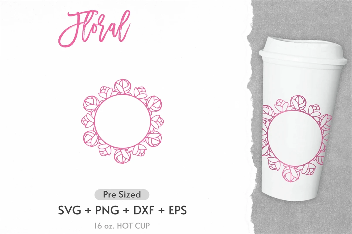 16oz Floral Flower Starbucks Hot Cup Svg, Full Wrap Hot Cup