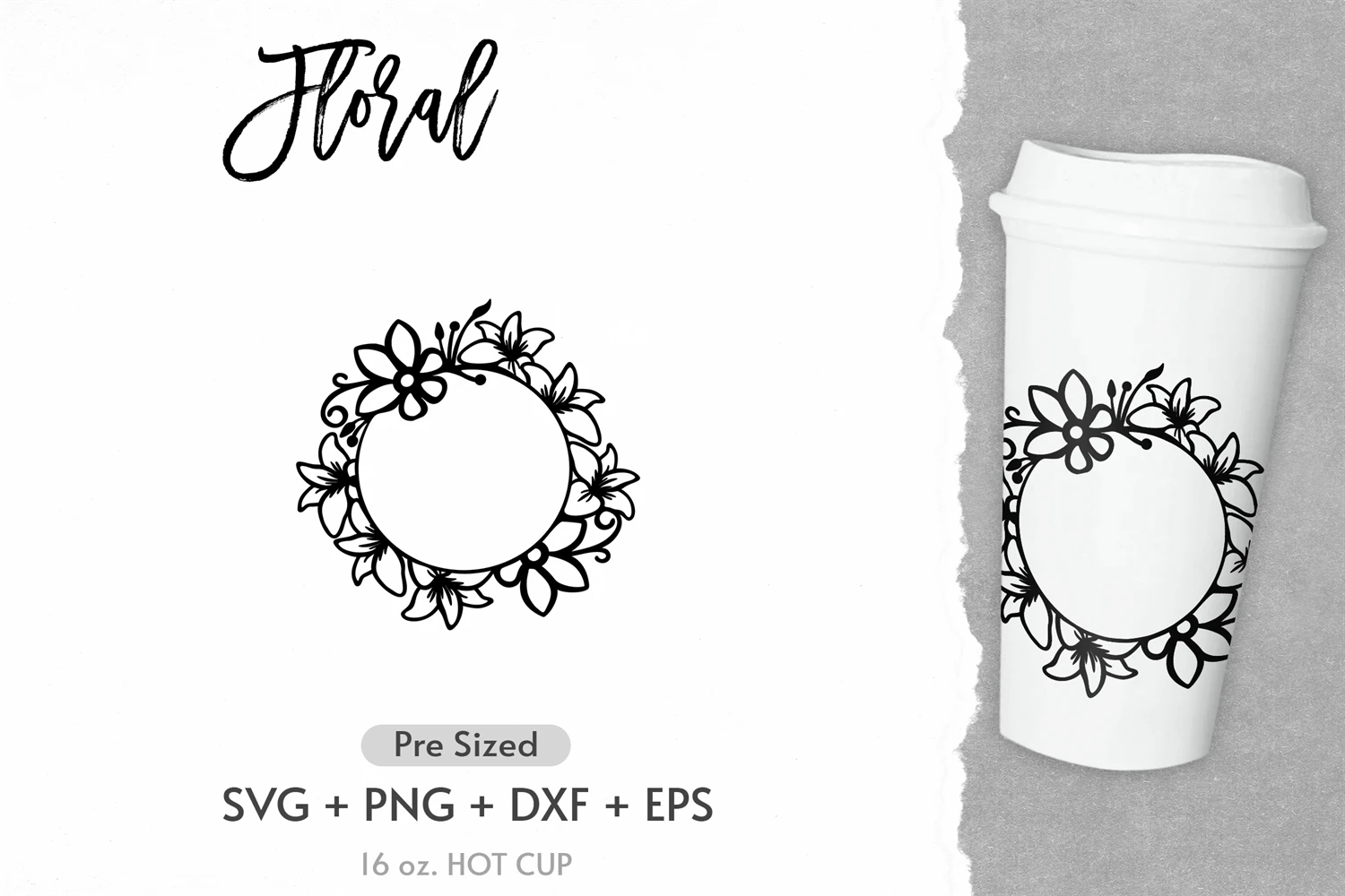 16oz Floral Flower Starbucks Hot Cup Svg, Full Wrap Hot Cup