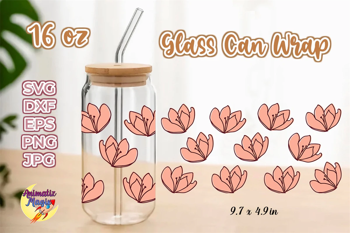 This file was designed for be used for your Libbey 16 oz glass can projects. However, they can still work in larger or smaller sizes. The svg and eps files can be edit however you need and you can move the elements around to fit your projects.