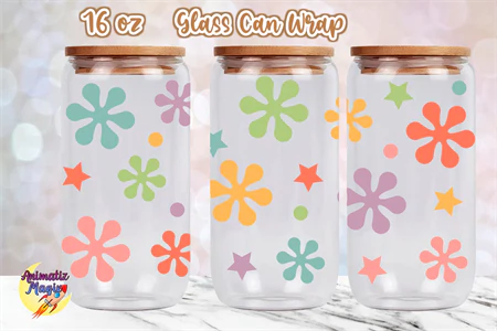 This file was designed for be used for your Libbey 16 oz glass can projects. However, they can still work in larger or smaller sizes. The svg and eps files can be edit however you need and you can move the elements around to fit your projects.