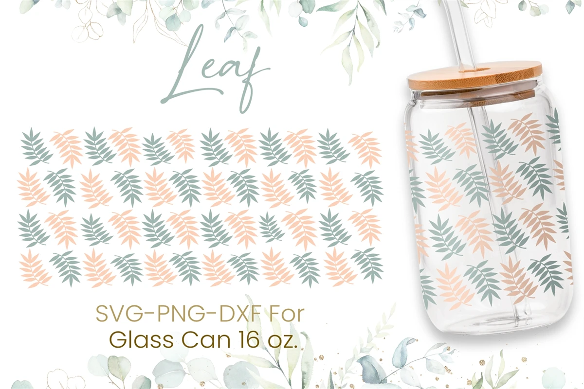 16oz Flower Leaves Libbey Glass Can Svg, Beer Can Glass Svg