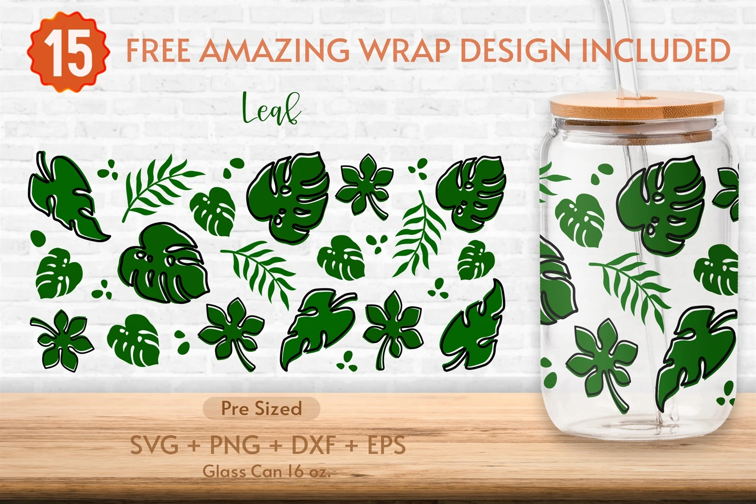 16oz Flower Leaves Libbey Glass Can Svg, Beer Can Glass,Boho