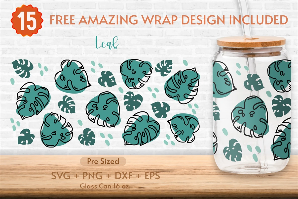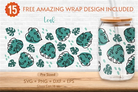 16oz Flower Leaves Libbey Glass Can Svg, Beer Can Glass,Boho