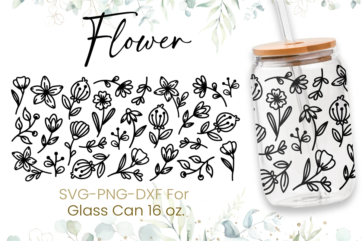 16oz Flower Libbey Glass Can Svg, Line Flower Svg, Png, Svg