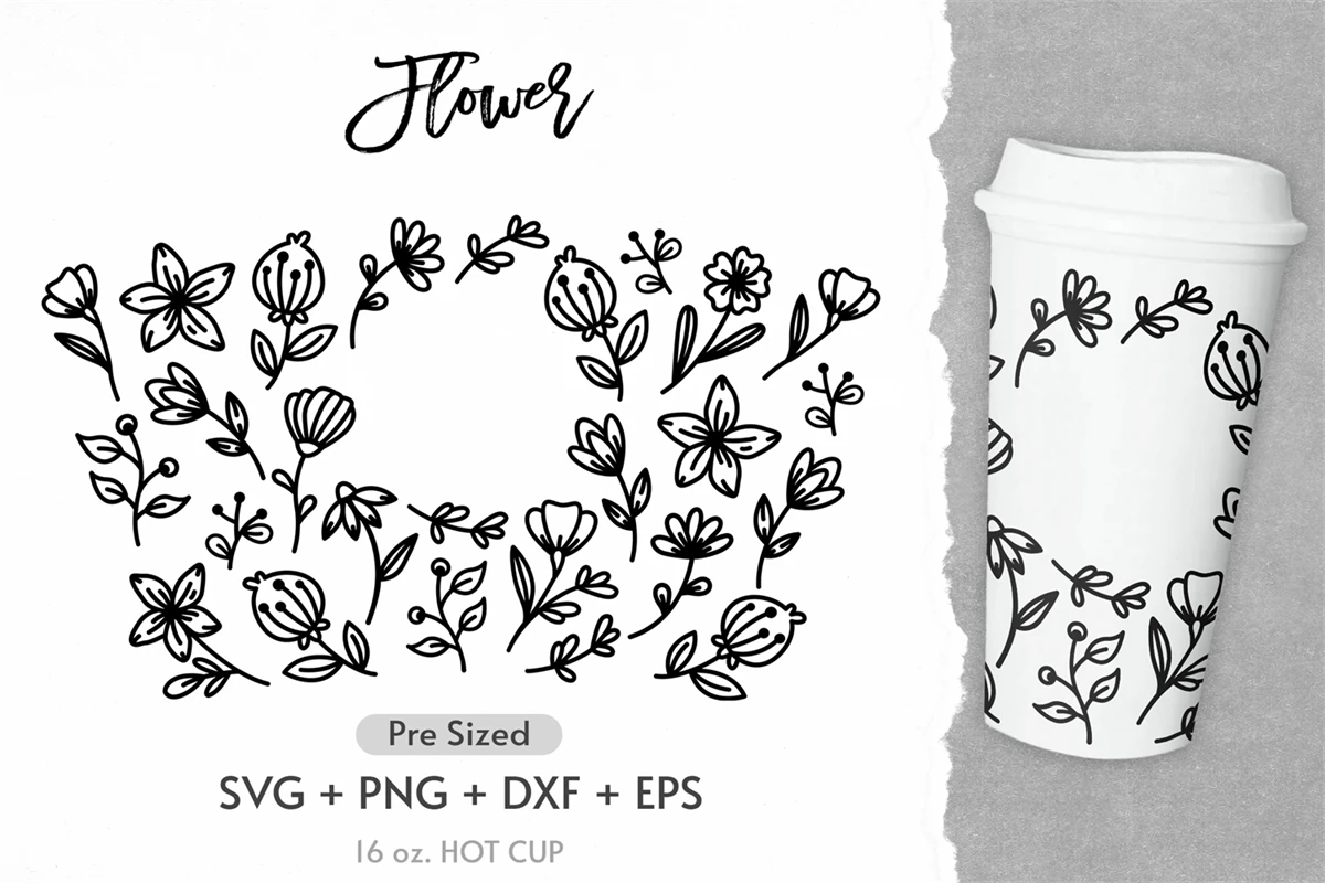 16oz Flower Starbucks Hot Cup Svg, Wild Flower Svg, Flowers