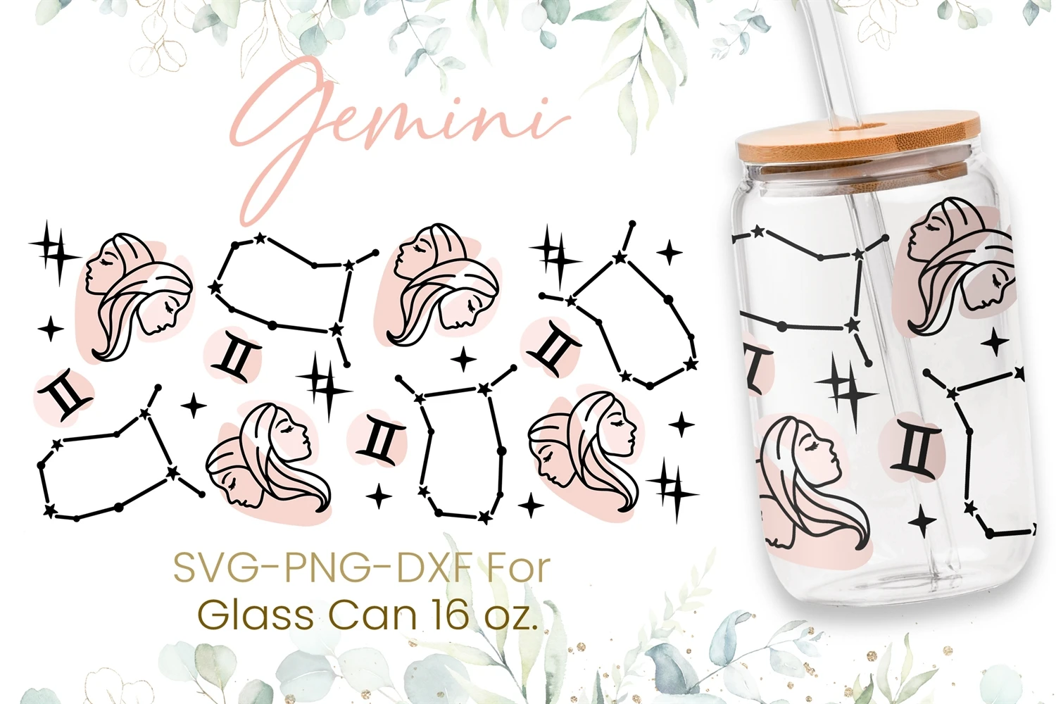 16oz Gemini Libbey Glass Can Svg, Horoscope Sign Svg, Zodiac