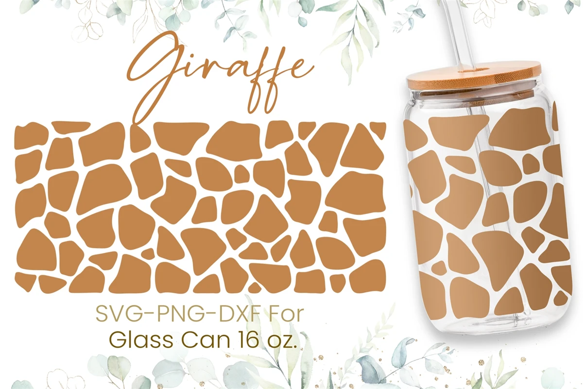 16oz Giraffe Pattern Libbey Glass Can Svg, Giraffe Svg, Png