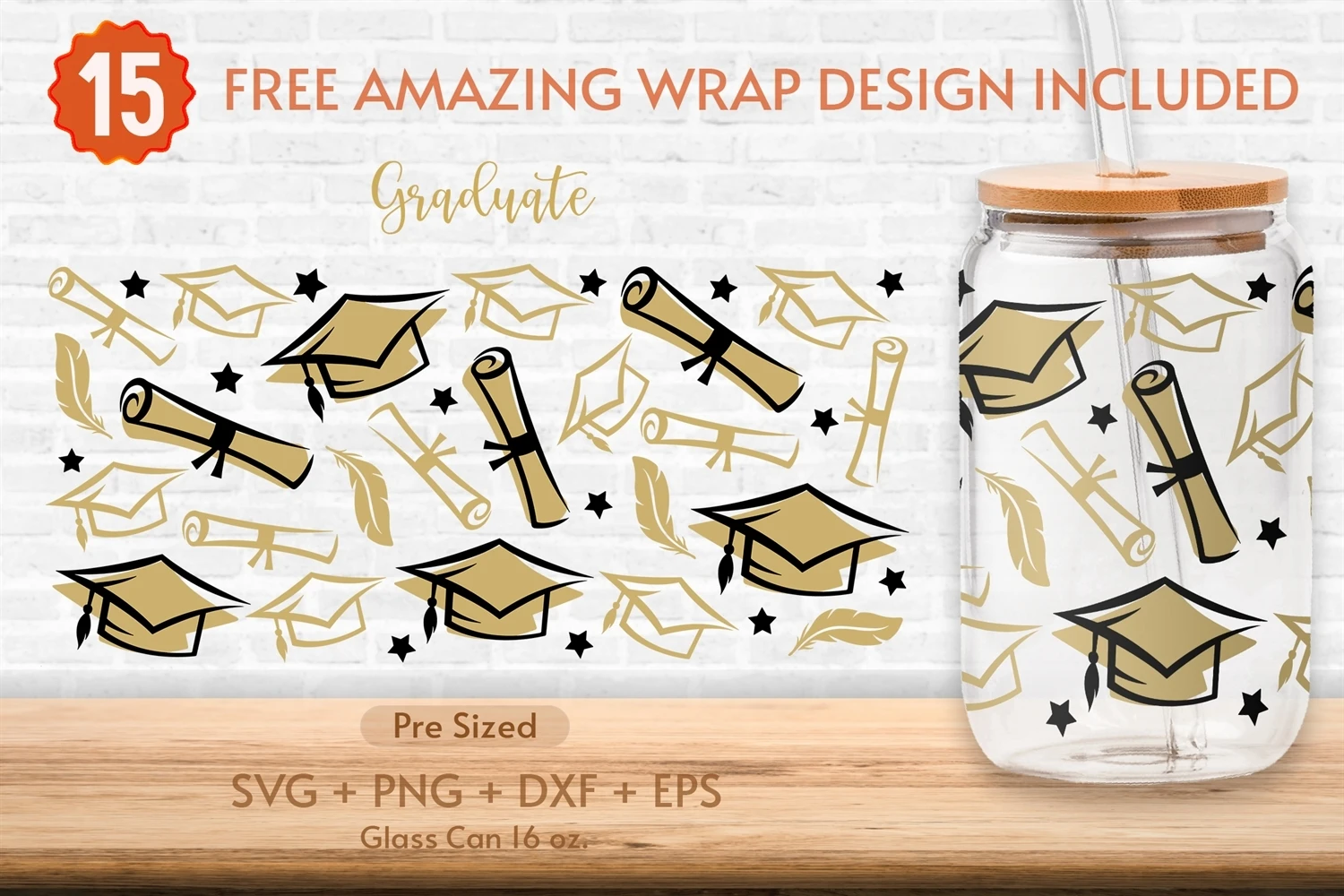 16oz Graduation Cap Libbey Glass Can Svg,Glass Can Full Svg
