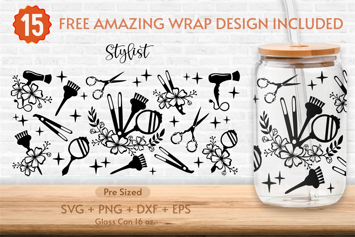 16oz Hairapist Libbey Glass Can Svg, Glass Can Full Wrap Svg