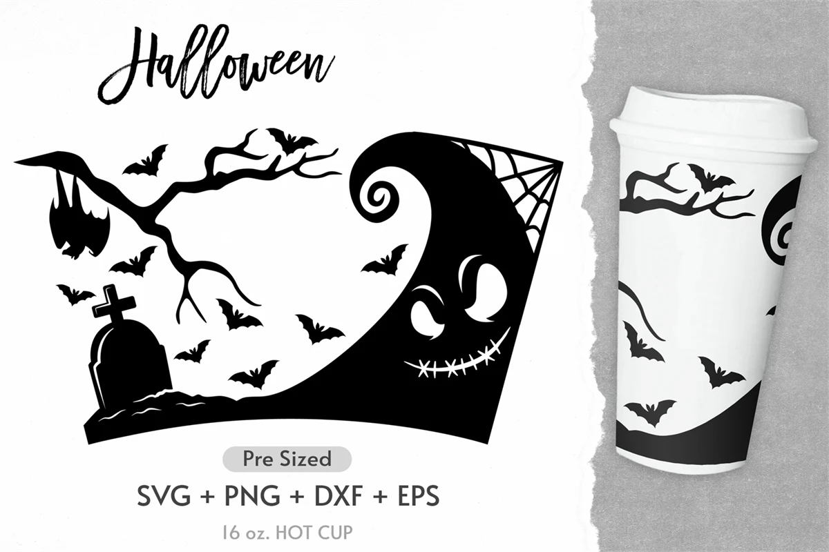 16oz Halloween Starbucks Hot Cup Svg, Jack Skellington Svg