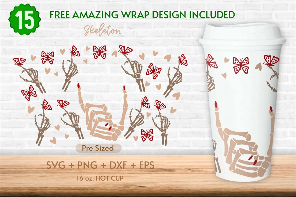 16oz Hand Skeleton Starbucks Hot Cup Svg, Butterfly Starbuck
