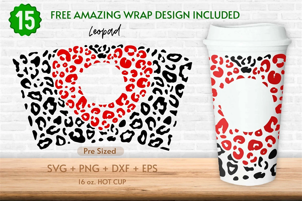 16oz Heart Leopard Pattern Starbucks Hot Cup Svg, Valentines