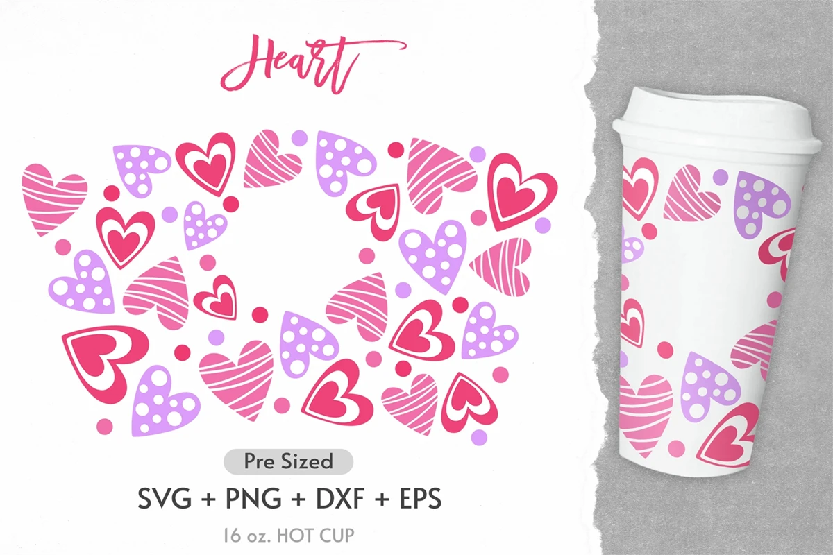 16oz Hearts Starbucks Hot Cup Svg, Hearts Svg, Heart Svg,Png