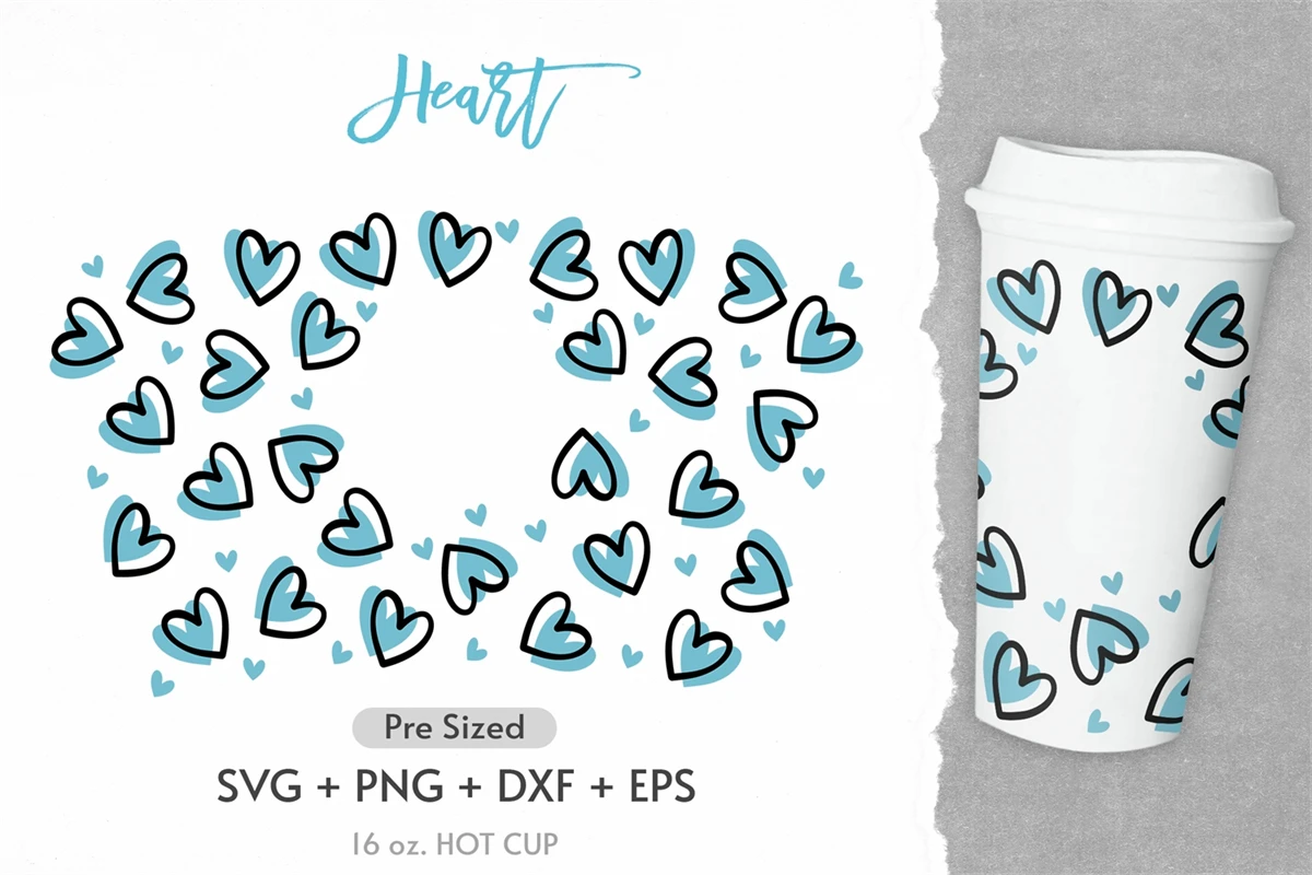 16oz Hearts Starbucks Hot Cup Svg, Hearts Svg, Love Svg,Png