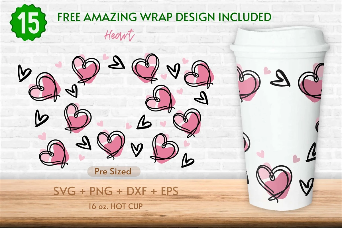 16oz Hearts Starbucks Hot Cup Svg, Valentines Day Svg, Heart