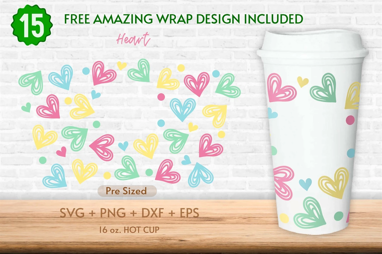 16oz Hearts Starbucks Hot Cup Svg, Valentines Day Svg, Heart