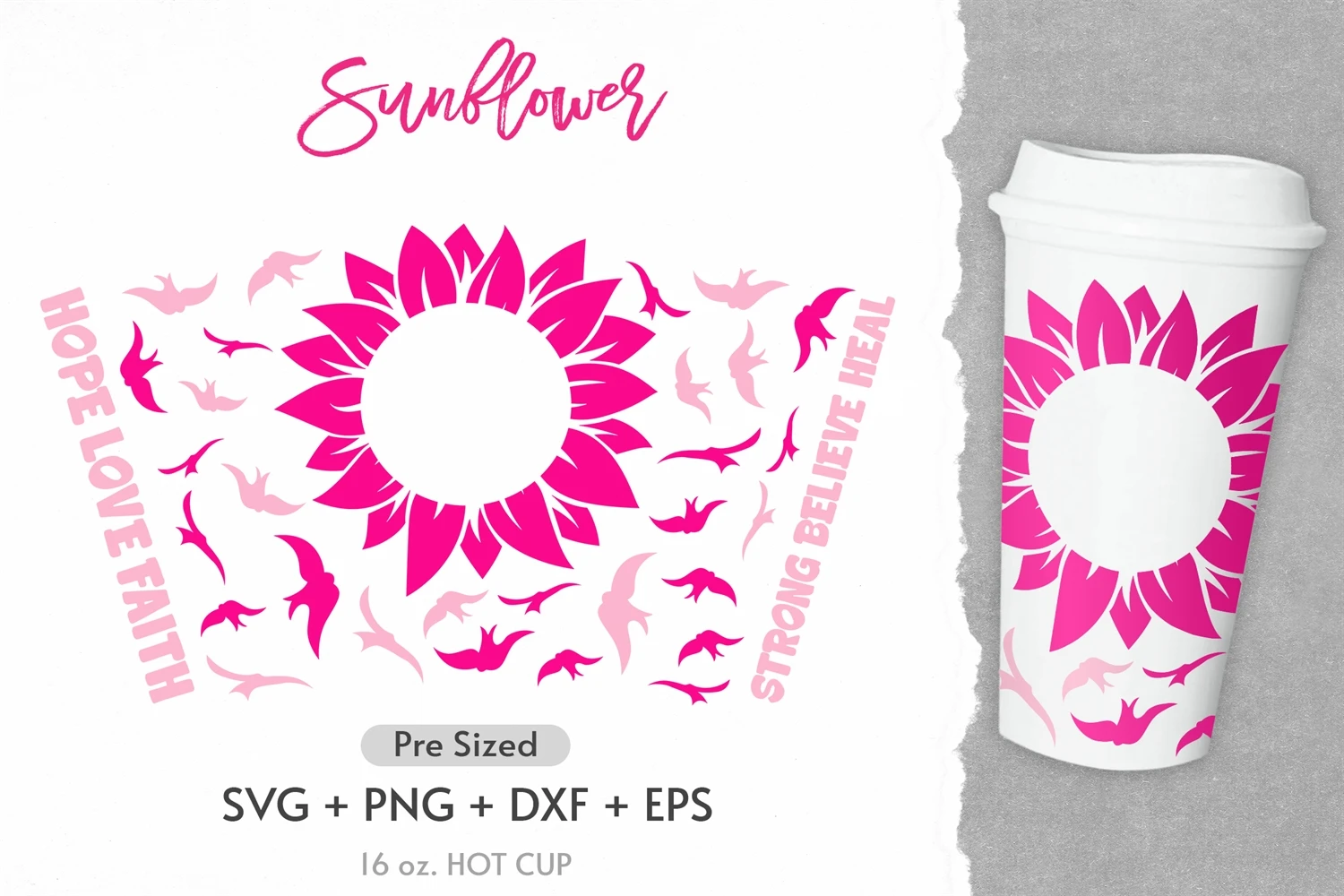 16oz Hope Love Faith Starbucks Hot Cup Svg,Sunflower Svg,Png