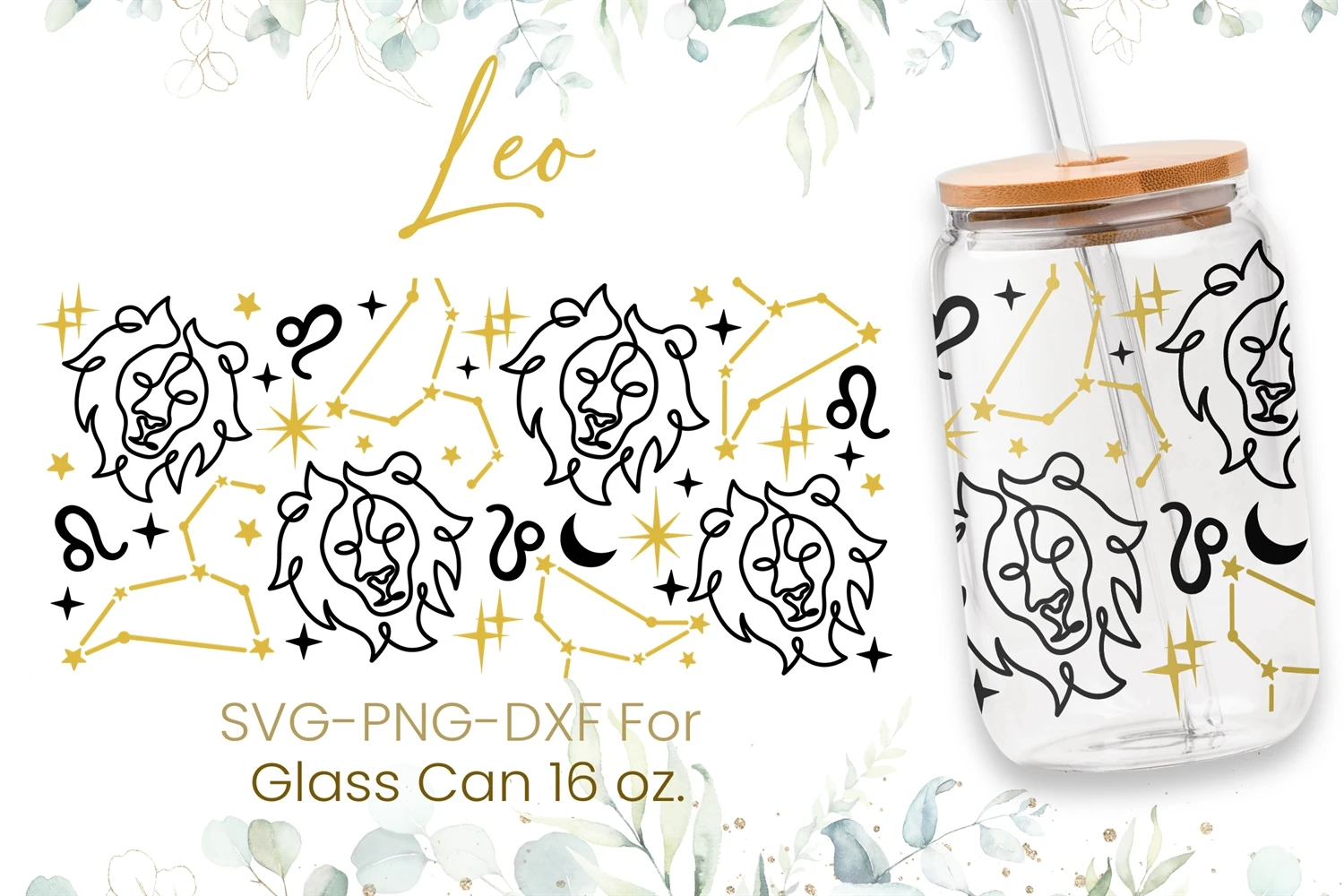 16oz Leo Libbey Glass Can Svg, Horoscope Sign Svg,Zodiac Svg