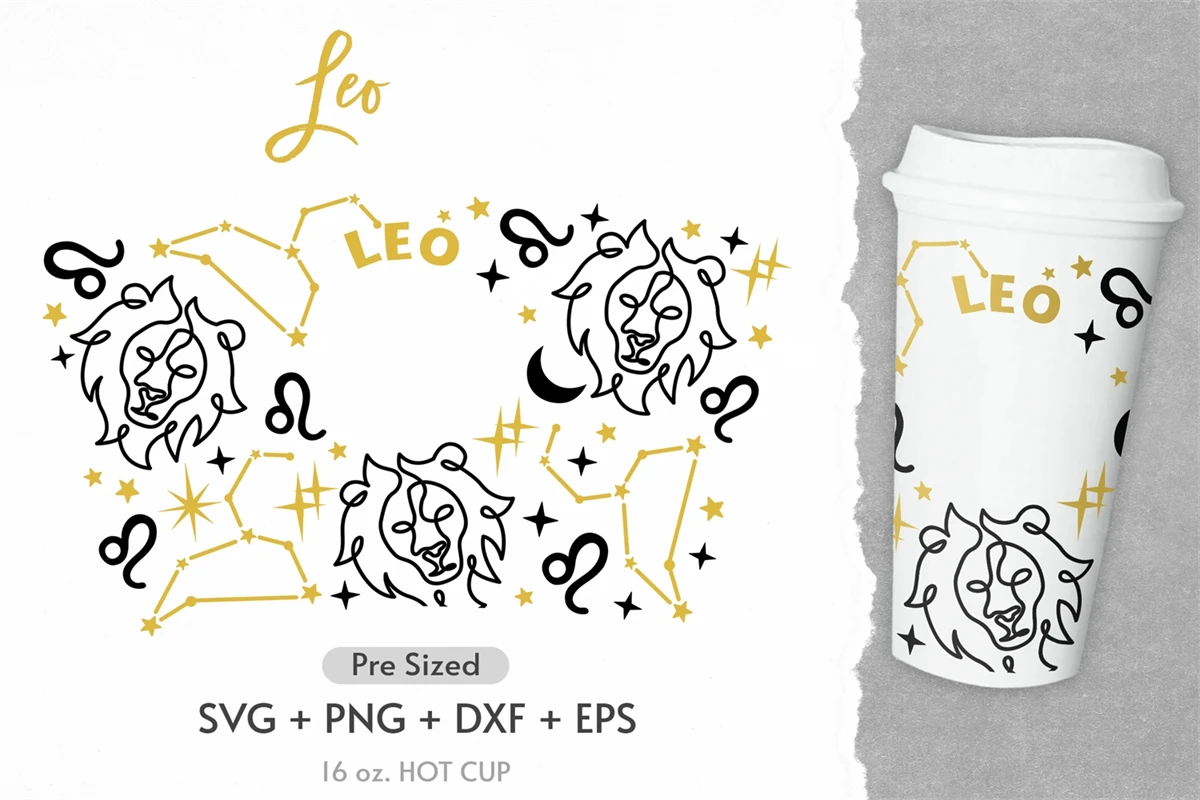 16oz Leo Starbucks Hot Cup Svg, Constellations Astrology Svg