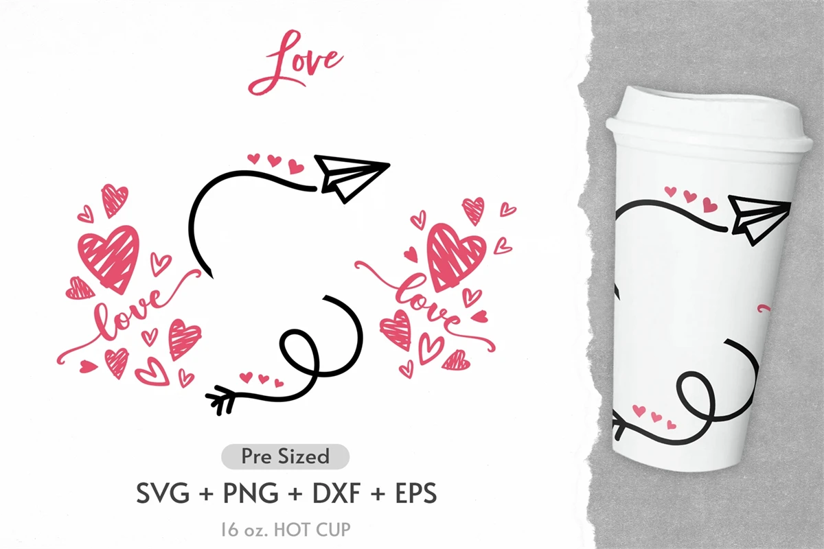 16oz Love Heart Starbucks Hot Cup Svg, Hearts Svg, Love Svg