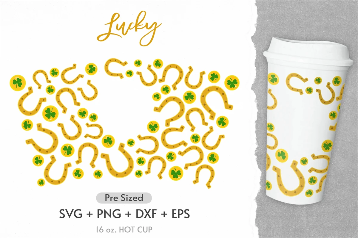 16oz Lucky Shamrock Starbucks Hot Cup Svg, St Patrick's Day