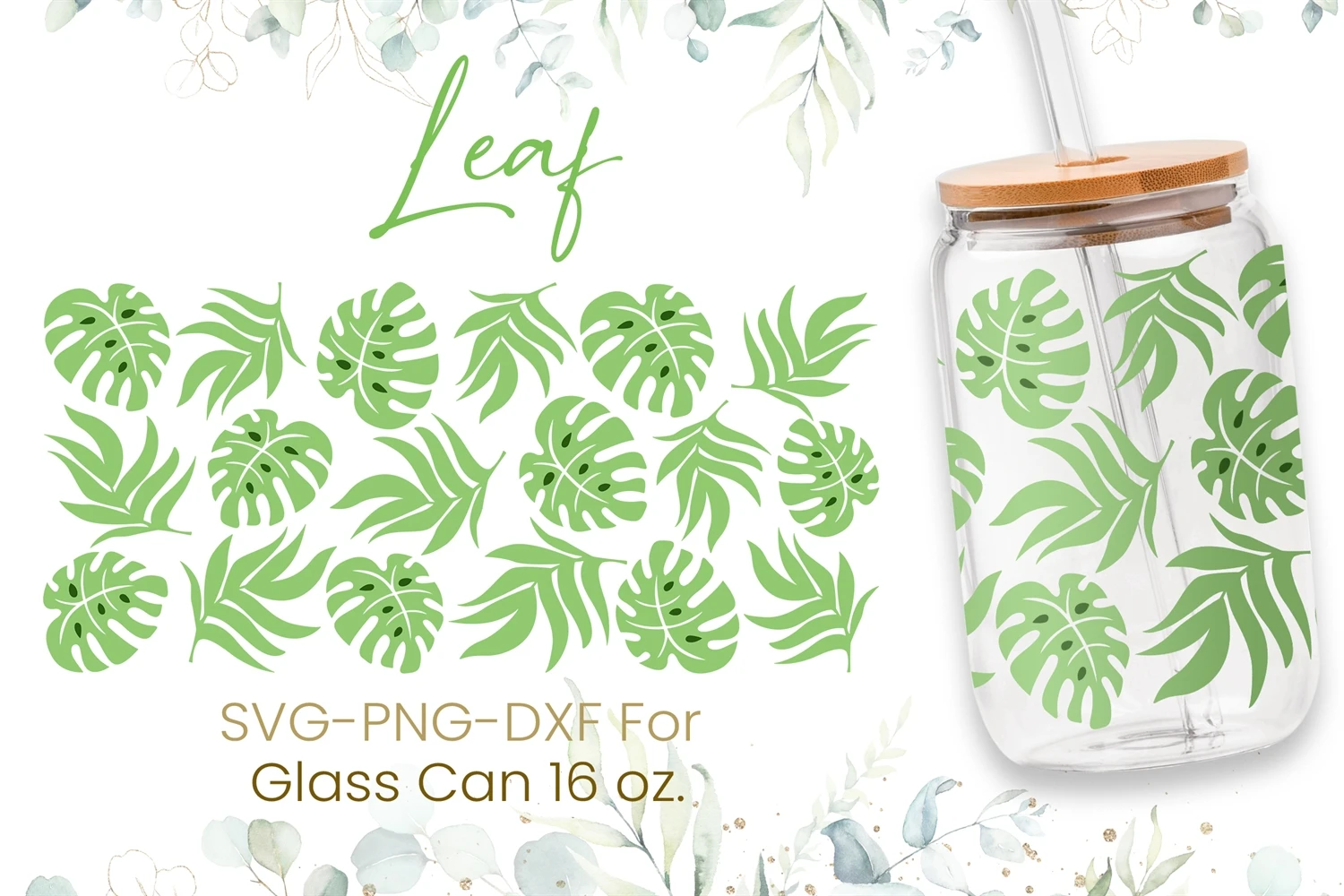 16oz Monstera Leaves Libbey Glass Can Svg,Beer Can Glass Svg