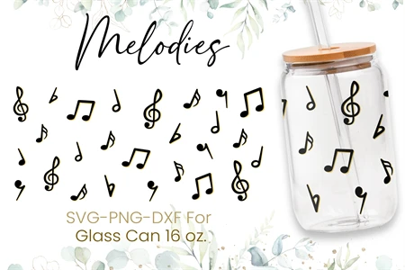 16oz Music Notes Libbey Glass Can Svg, Music Symbol Svg, Png