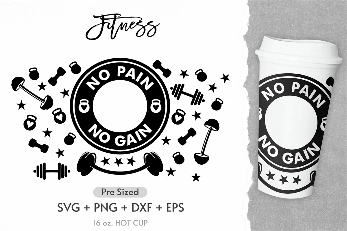 16oz No Pain No Gain Starbucks Hot Cup Svg,Sport Svg,Gym Svg