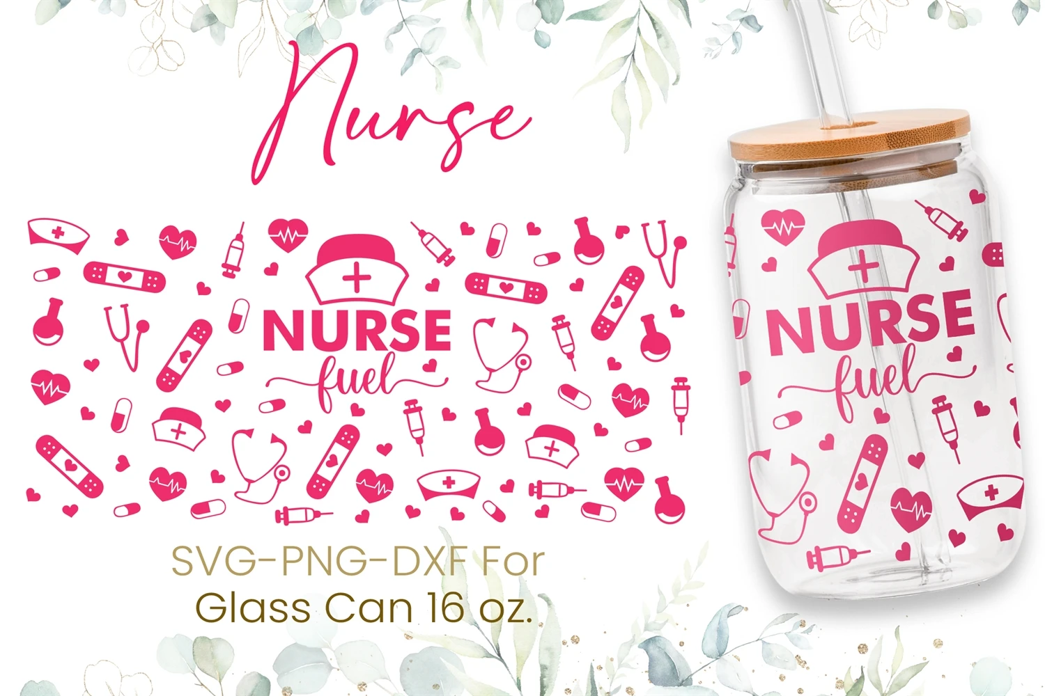 16oz Nurse Fuel Libbey Glass Can Svg,Glass Can Full Wrap Svg
