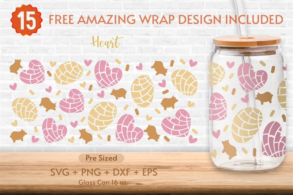 16oz Pigs Hearts Pattern Libbey Glass Can Svg,Beer Glass Can