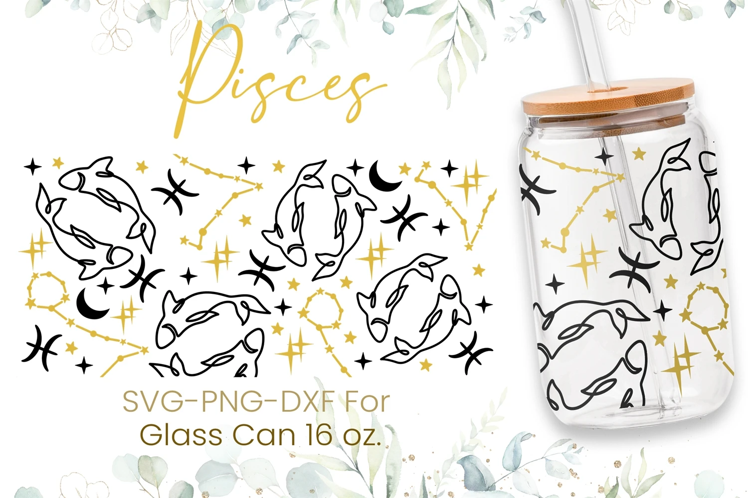 16oz Pisces Libbey Glass Can Svg, Horoscope Sign Svg, Cricut
