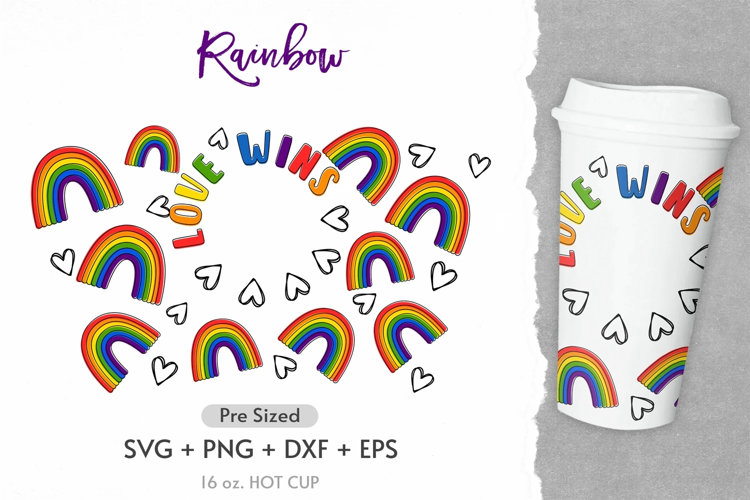 16oz Rainbow Starbucks Hot Cup Svg, Pattern Svg, Summer Svg
