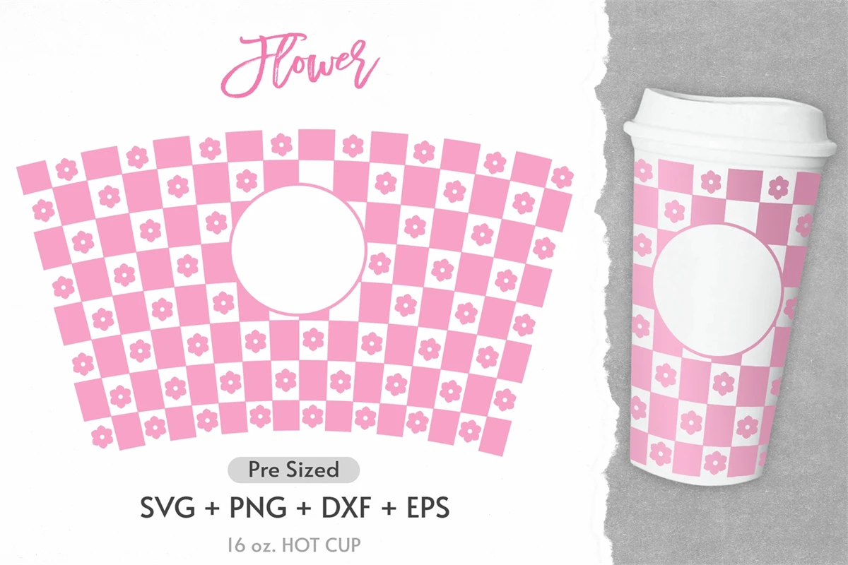16oz Retro Flower Starbucks Hot Cup Svg,Roses Svg,Flower Svg