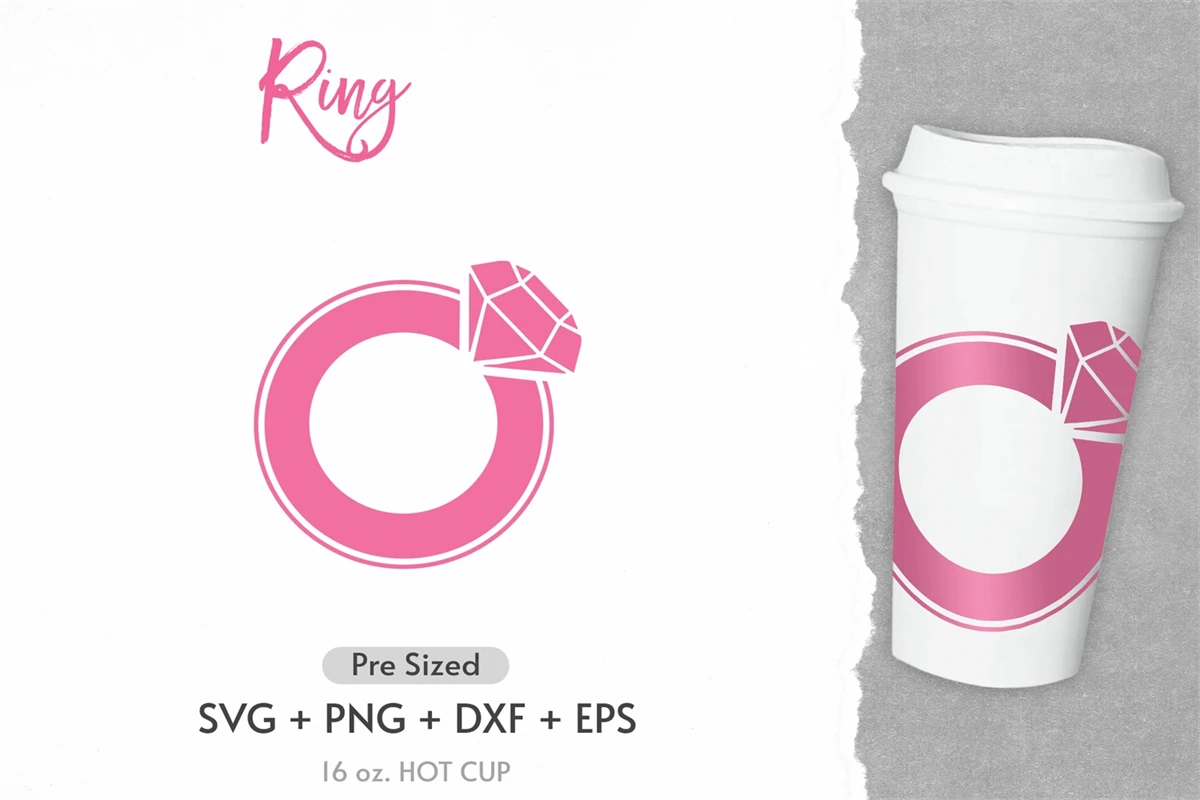 16oz Ring Starbucks Hot Cup Svg, Venti Full Wrap Svg, Hearts
