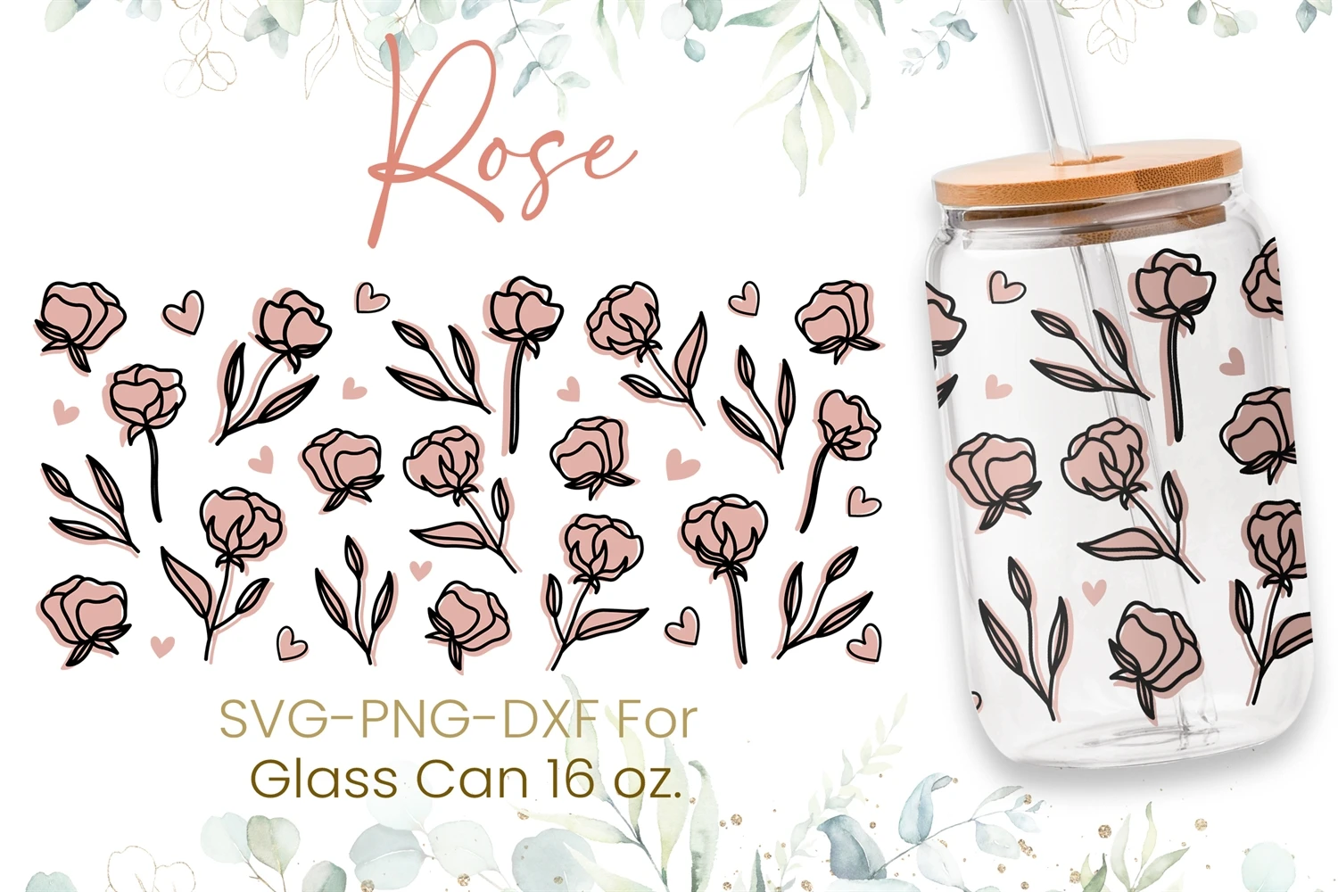 16oz Rose Libbey Glass Can Svg, Flower Svg, Coffee Can Glass