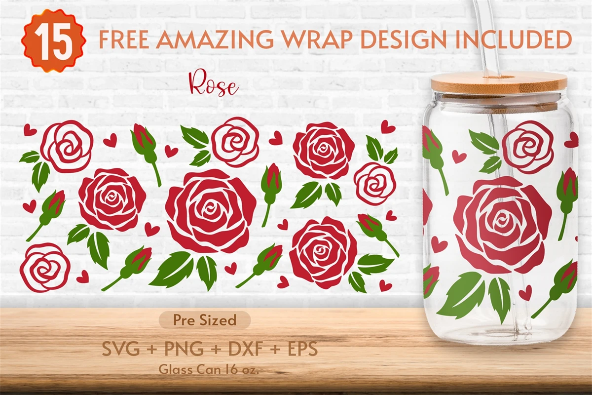16oz Rose Libbey Glass Can Svg, Glass Can Full Wrap