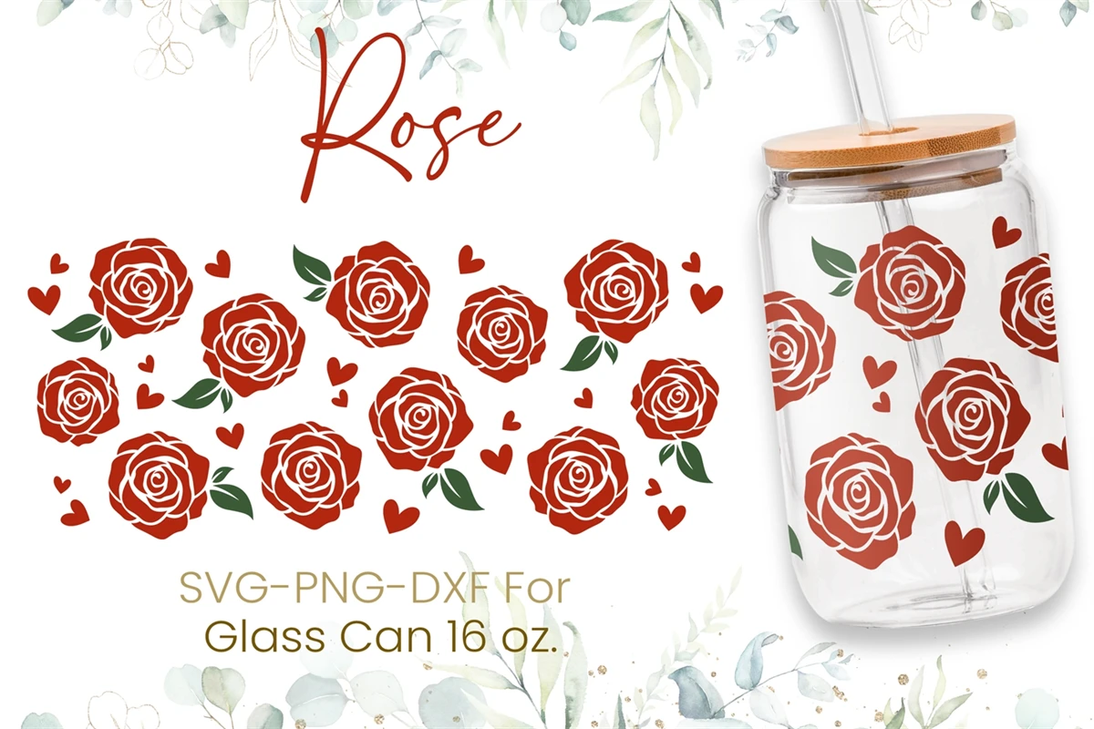 16oz Rose Libbey Glass Can Svg, Rose Glass Can, Flower Svg